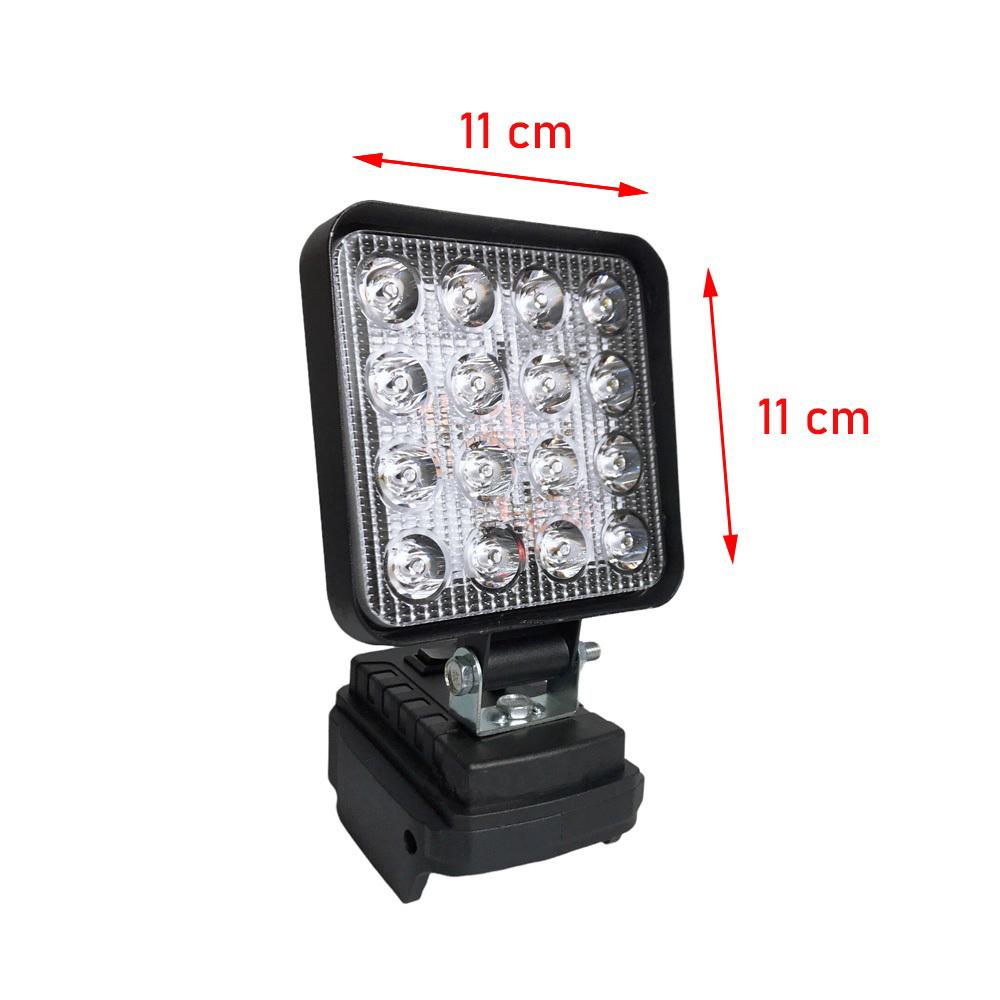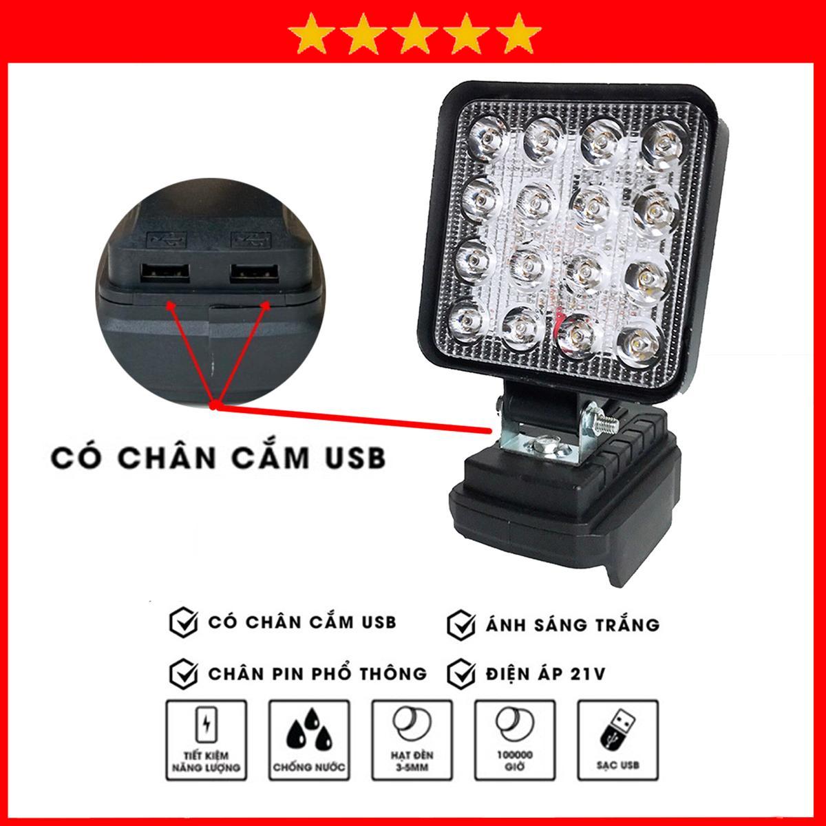 Đèn Led Chạy Pin Có 2 Cổng Sạc USB, Chân Pin Phổ Thông Makita M21, Đèn 16 Bóng Led Siêu Sáng