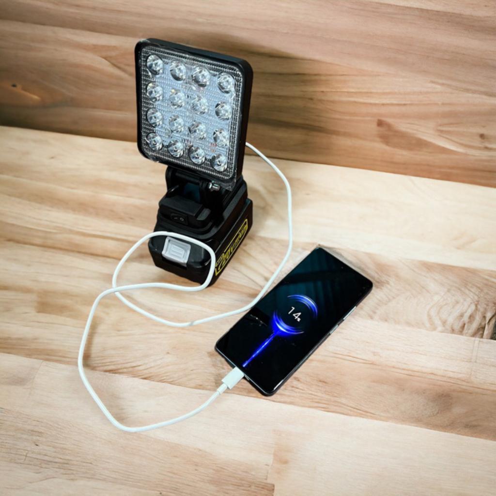 Đèn Led Chạy Pin Có 2 Cổng Sạc USB, Chân Pin Phổ Thông Makita M21, Đèn 16 Bóng Led Siêu Sáng