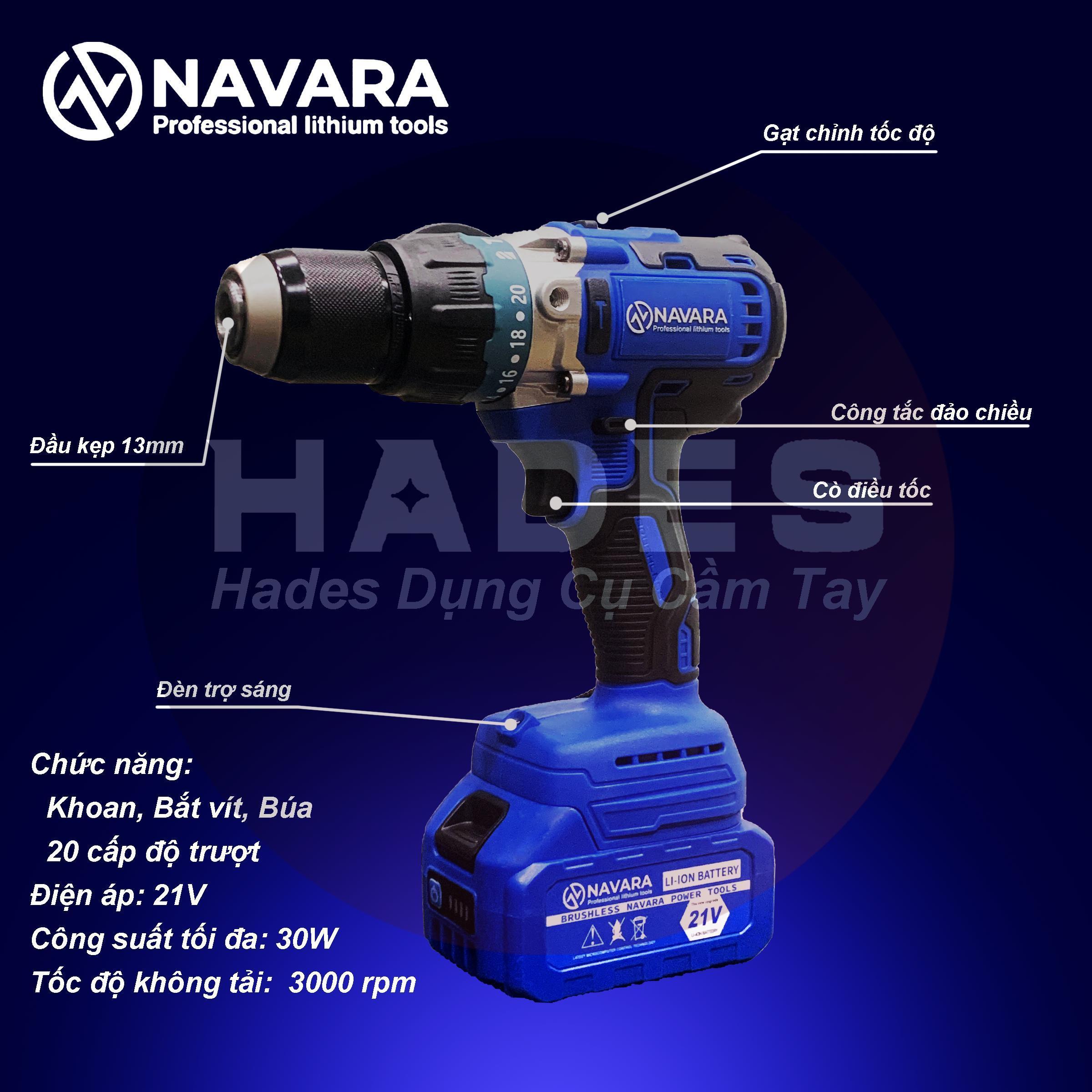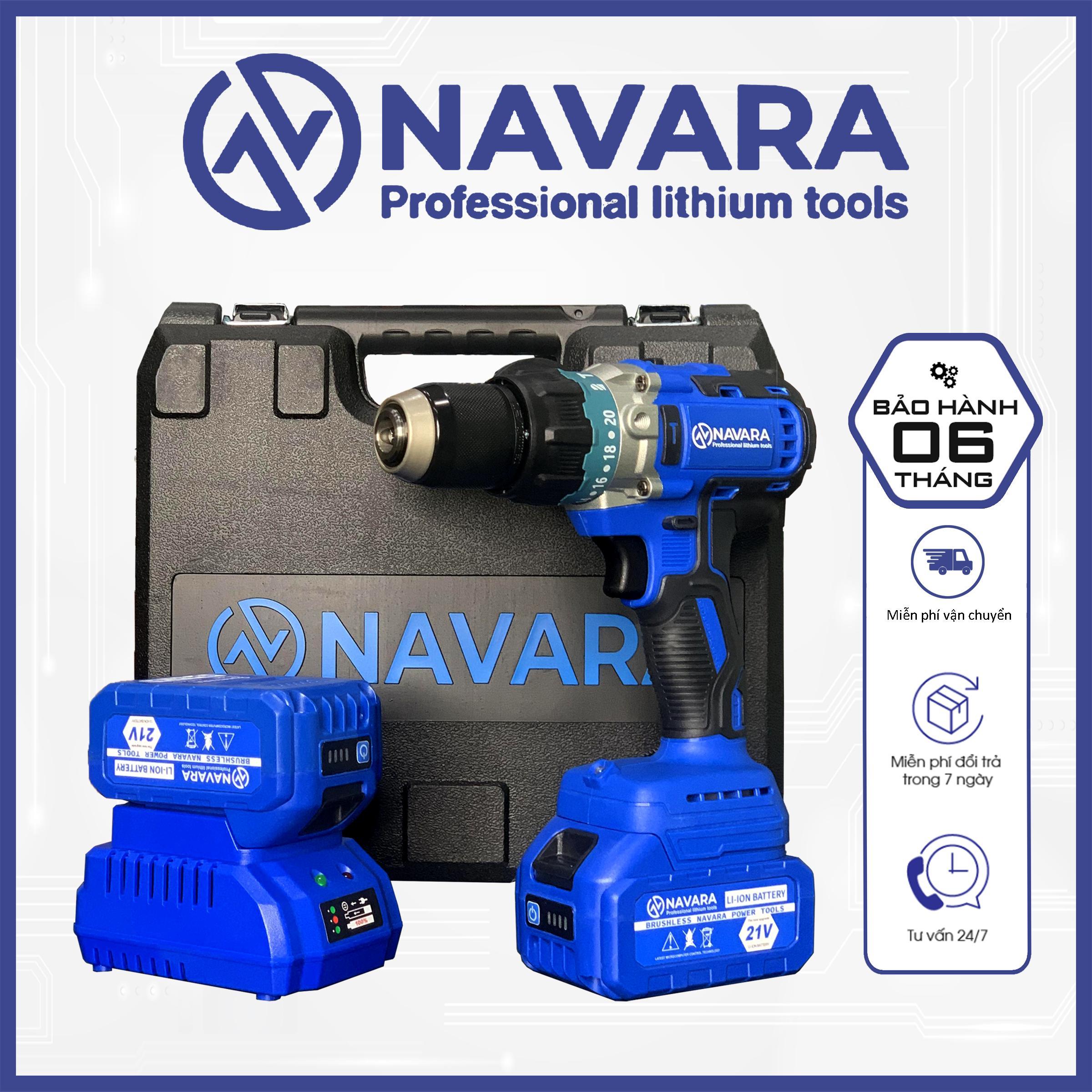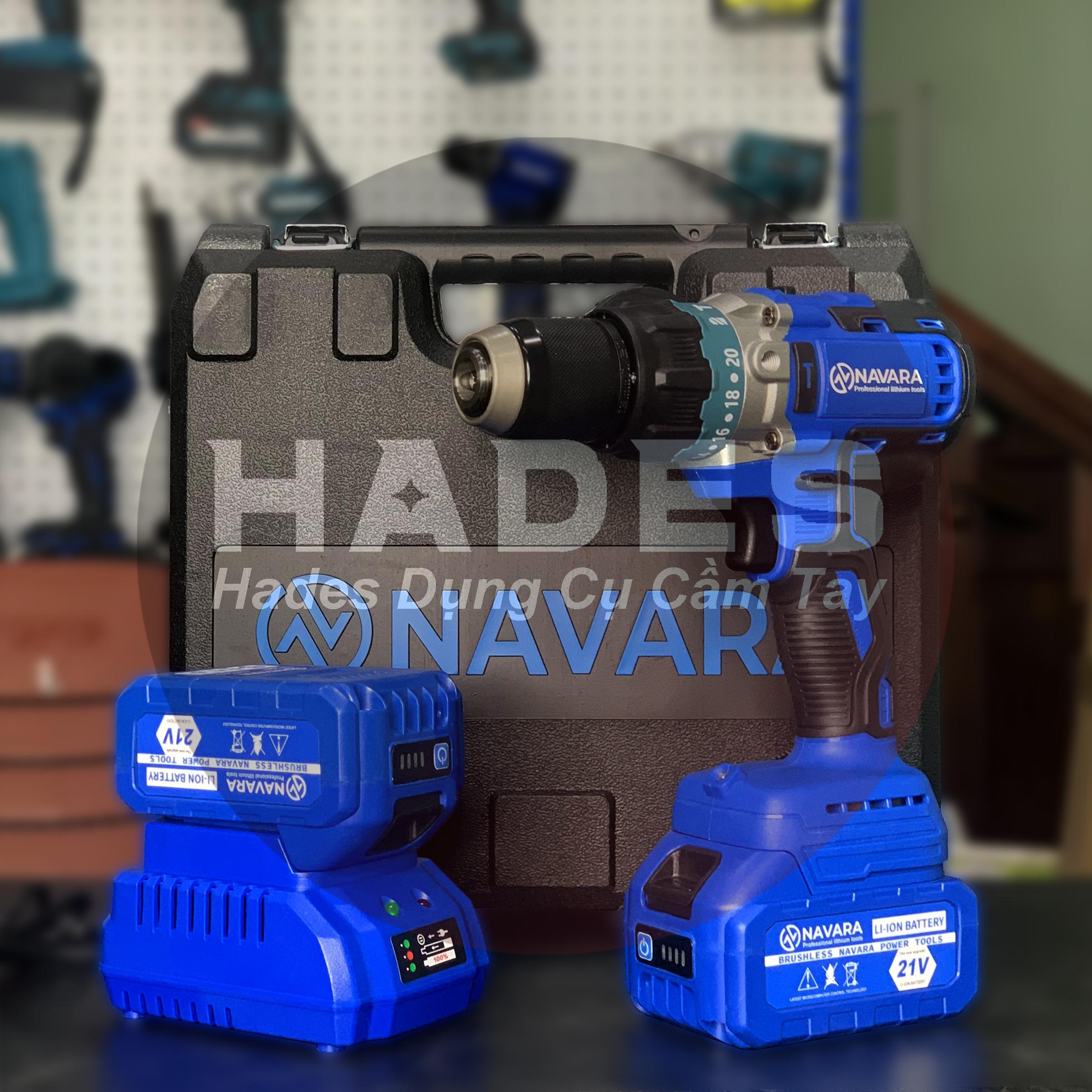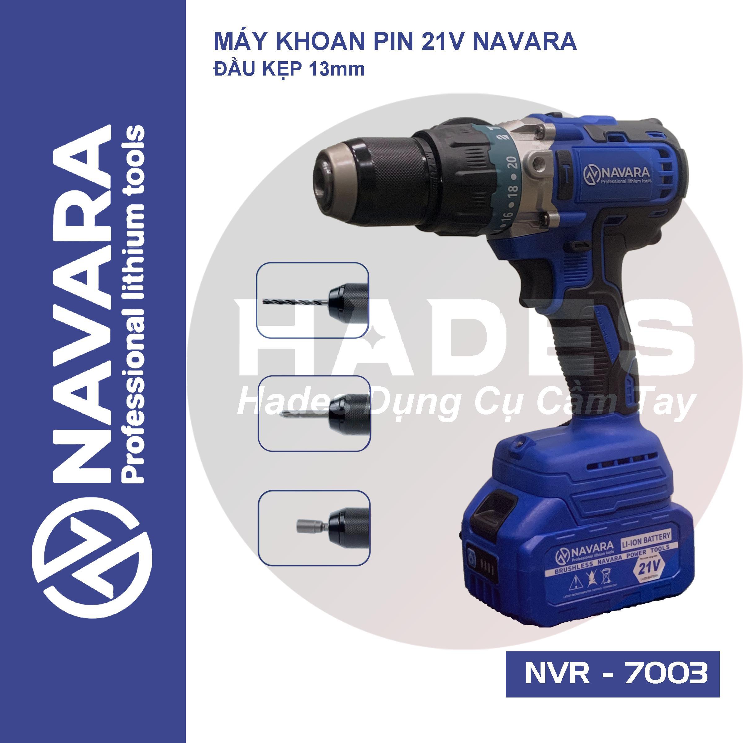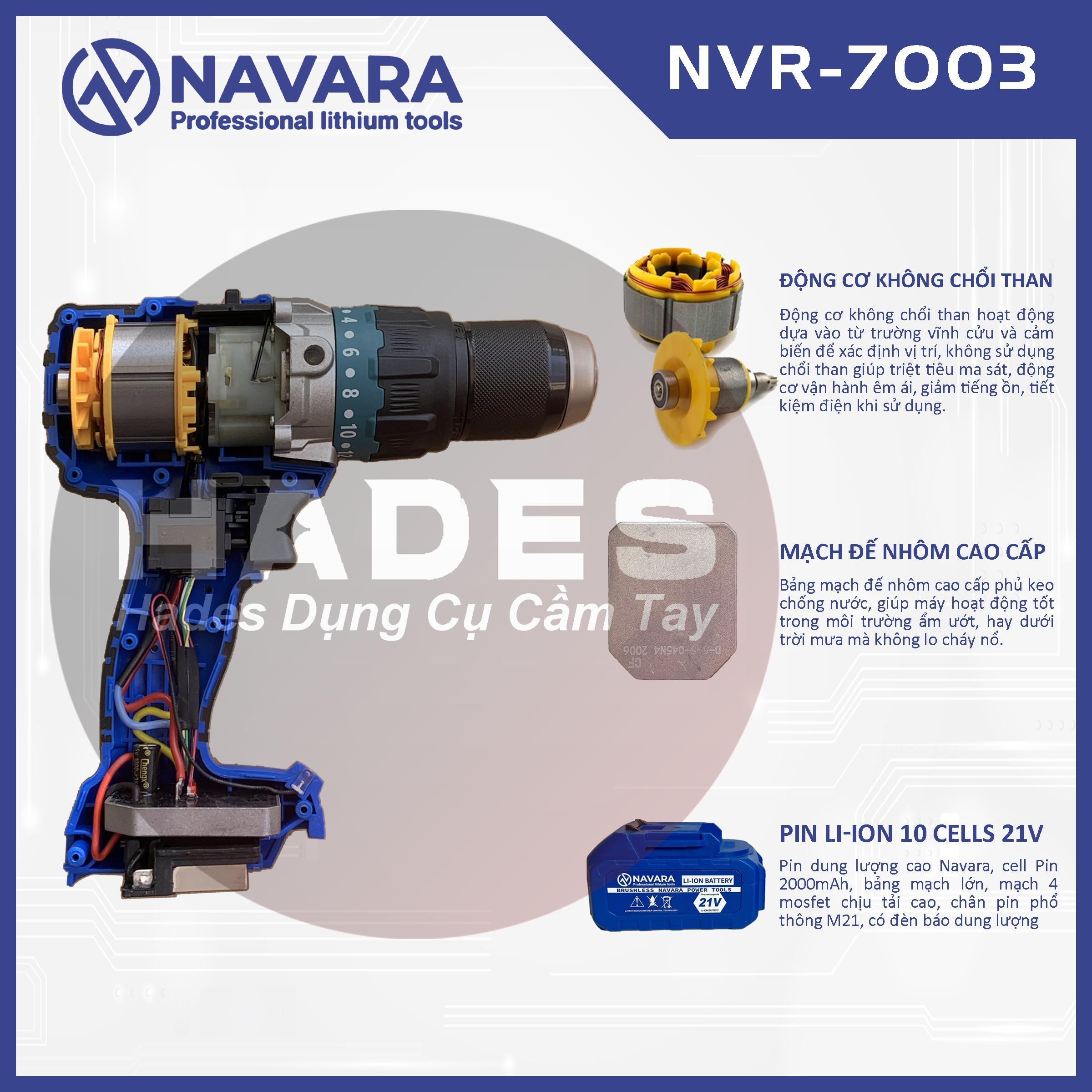 Máy Khoan Pin Cầm Tay 3 chức năng Navara NVR-7003, Đầu kẹp 13mm Auto Lock, Động cơ không chổi than, Có tay cầm phụ, Chân Pin Phổ thông