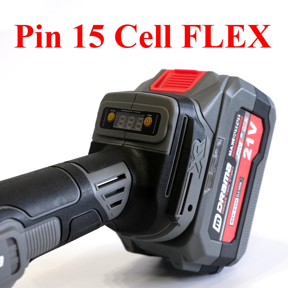 Máy Mài Dùng Pin DRAMA D-5100 FLEX, Tính Tự Chống Sốc Vỡ Đá, Chống Khởi Động Lại, Động Cơ Chổi Than, Chân Pin Phổ Thông, Bộ 2 Pin 15 Cell 6Ah Thế Hệ Mới