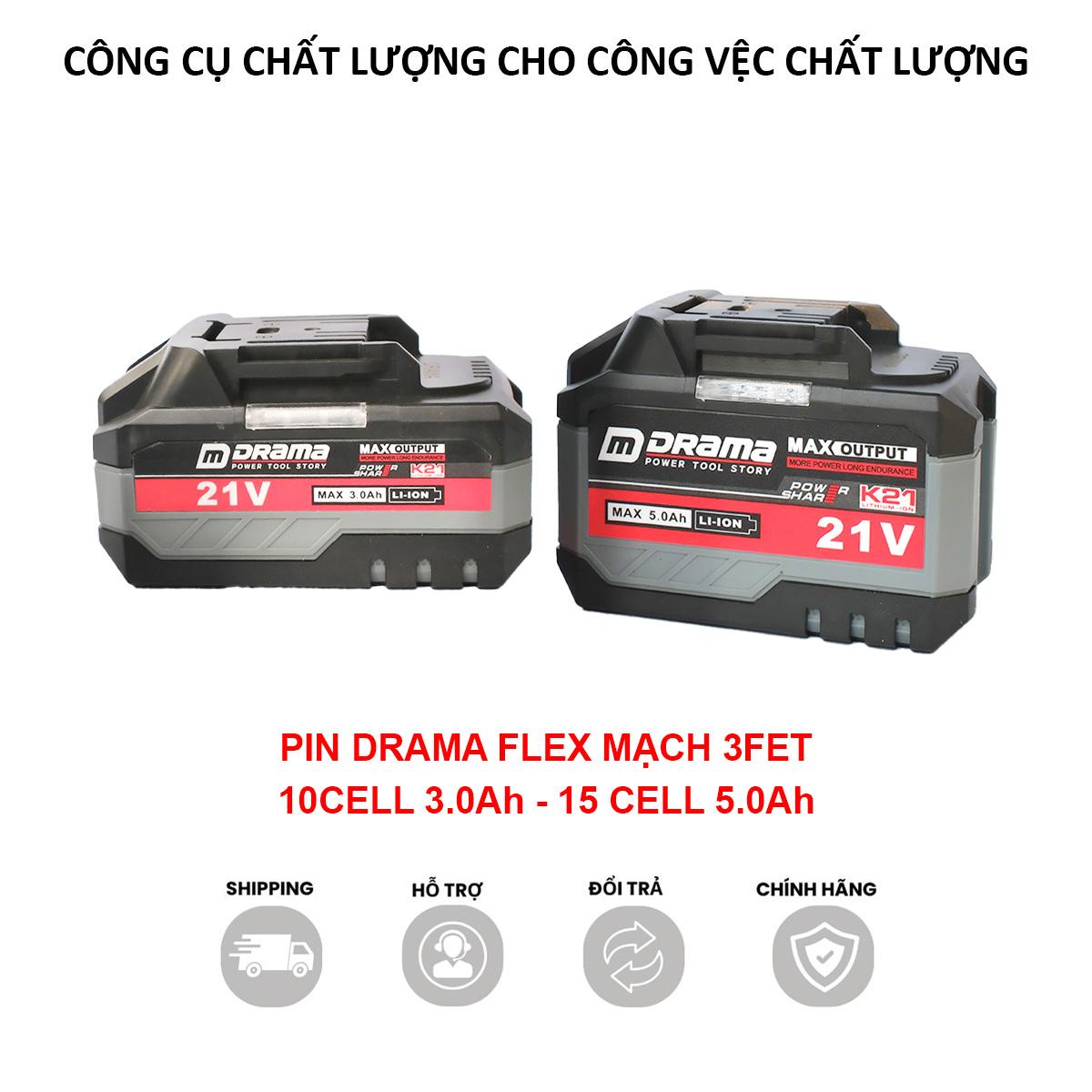 Pin DRAMA Chính Hãng cho máy khoan máy siết Có đèn báo pin, Chân phổ thông 4cm