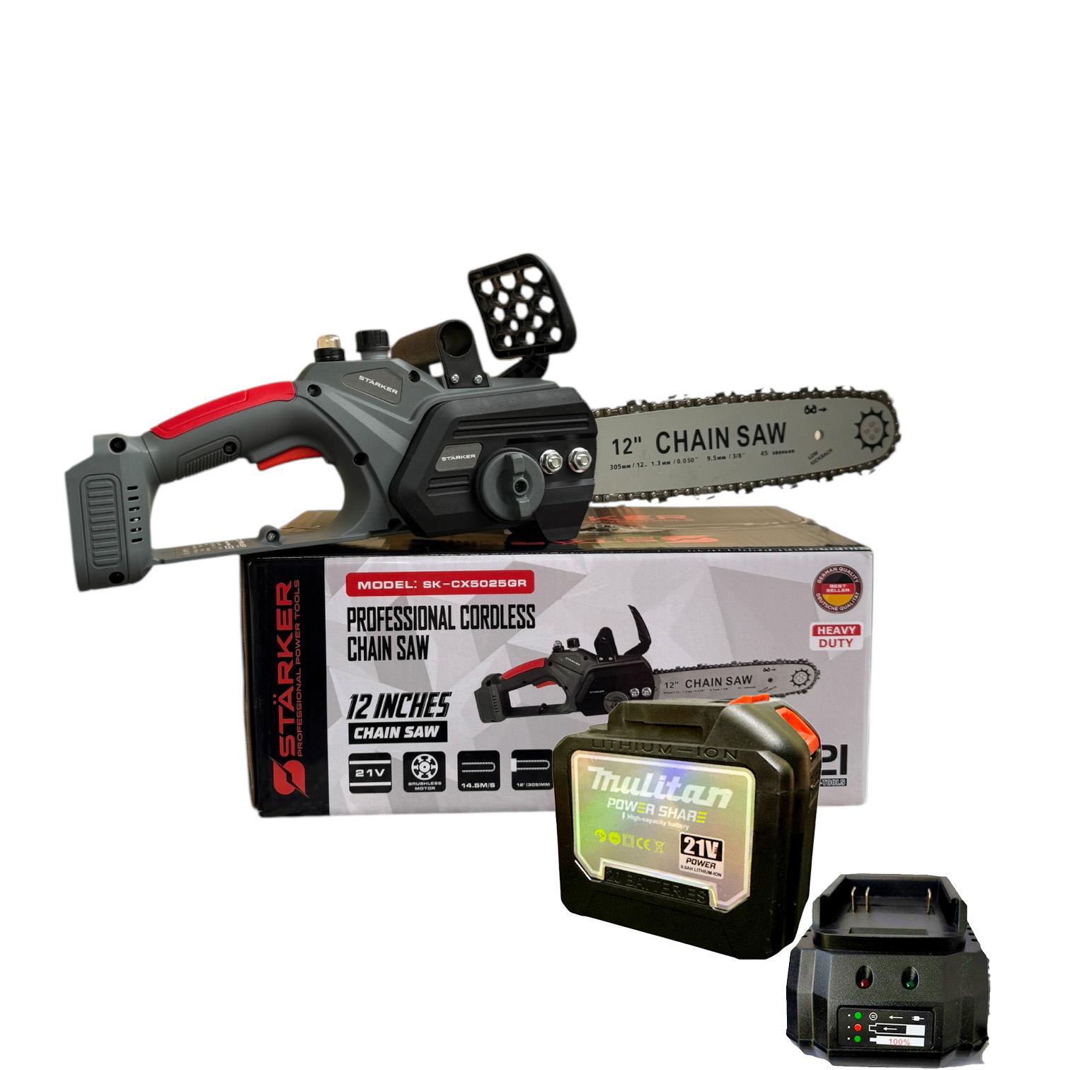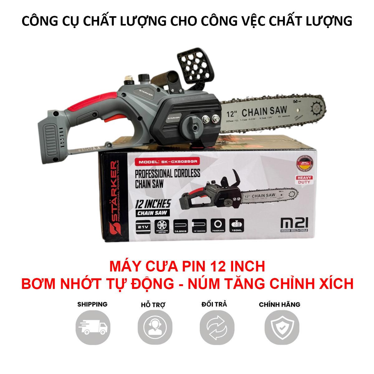 [TẶNG DÂY XÍCH] Máy cưa xích 12 INCH Starker sử dụng pin phổ thông Makita, cưa cắt gỗ, động cơ không chổi than, lõi đồng