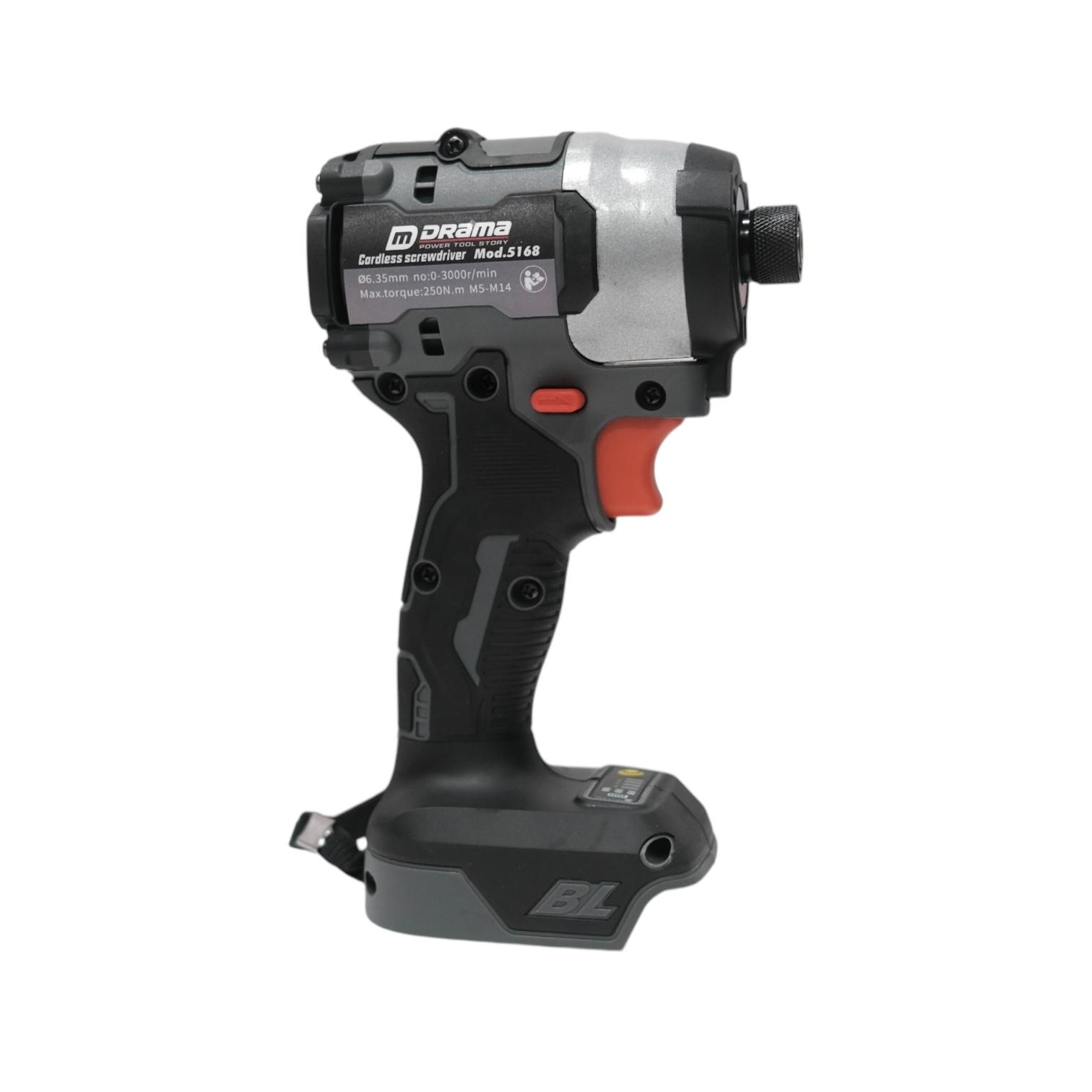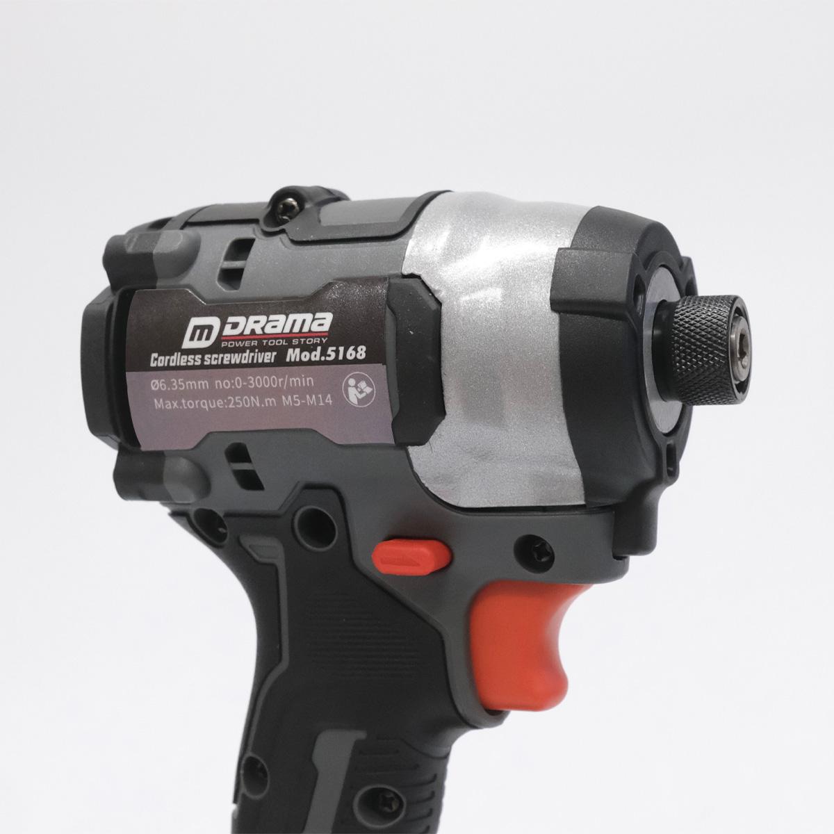 – Tên sản phẩm:Máy Chuyên Vít DRAMA 5168 Bản FLEX Xám Xi Măng Động Cơ Không Chổi Than Lực Siết 250nm Sử Dụng Chân Pin Phổ Thông 4CM