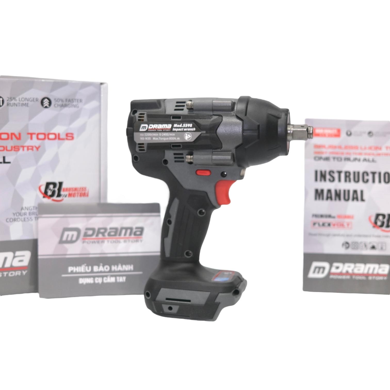 Thân Máy Siết bulong DRAMA D5598 FLEX Lực siết 800 Nm đầu đặc 1/2 tiện dụng đa năng, siet bulong pin
