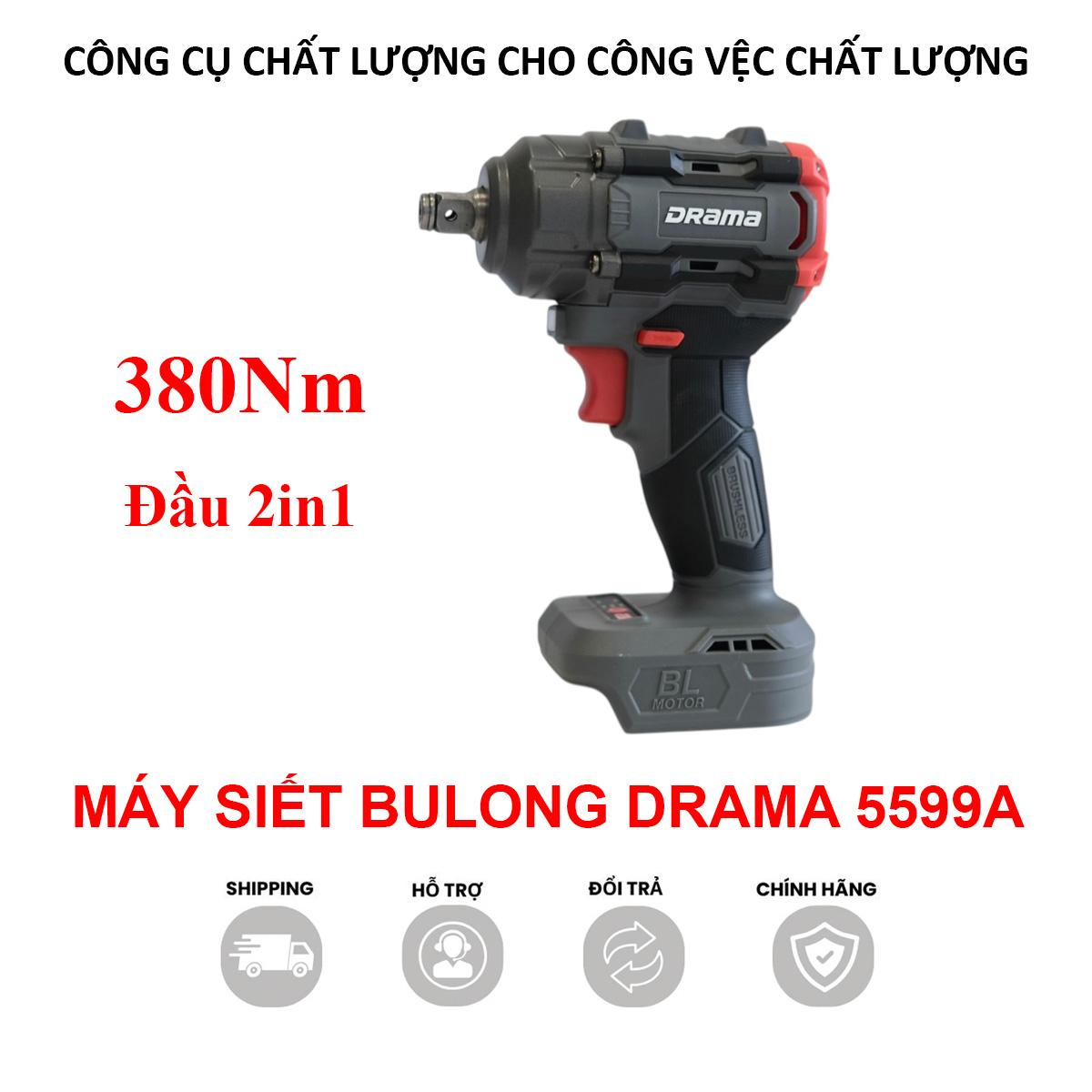 Thân Máy siết bulong pin DRAMA 5599A 380Nm, Động cơ KHÔNG CHỔI THAN, Lực siết 380Nm, 2 trong 1